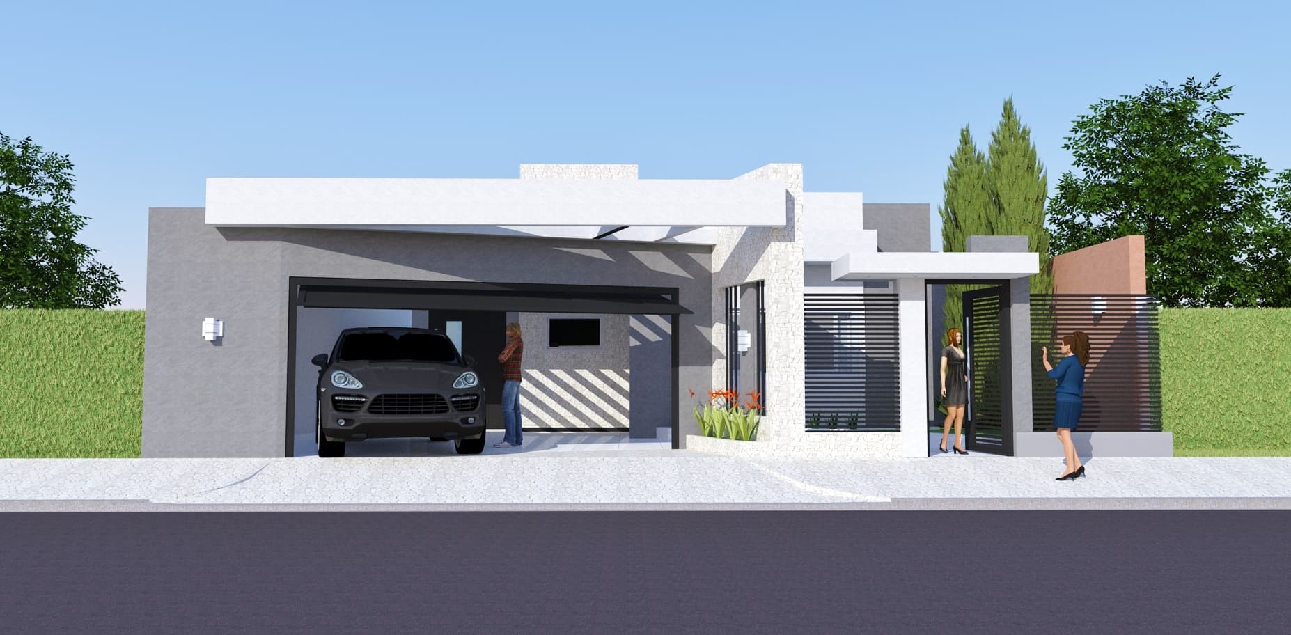 Ótimo projeto de residência com estilo moderno. Sua fachada possui texturas e cores diferentes, e paredes com um alinhamento proposital para impressionar os olhares. A casa contempla uma planta bem organizada, onde os dormitórios desfrutam de banheiros individuais, uma área gourmet integrada a cozinha, além de uma lavanderia e lavabo muito bem instalados em um local discreto.