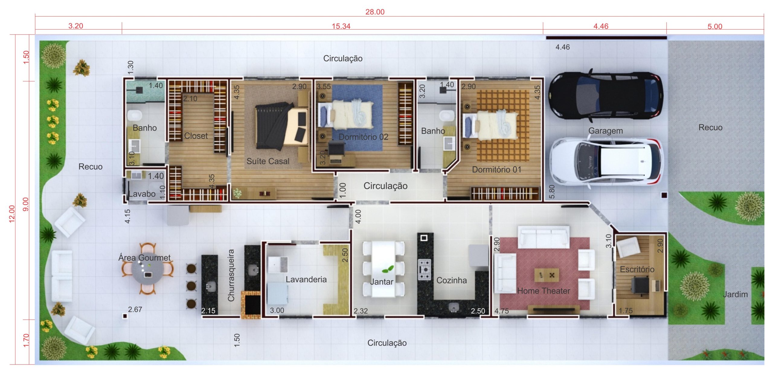 Este projeto envolve uma residência para uma família que gosta de se reunir em uma boa sala de TV. Ao lado da entrada apresentamos um escritório, algo muito útil no dia a dia, o qual pode ser utilizado para receber pessoas, tratar de negócios importantes ou para estudos. A casa é dividida ao meio, tendo uma área comum e uma área intima. Possui um corredor interno que da acesso aos ambientes de dormitórios. Nos fundos disponibilizamos uma espaçosa lavanderia e uma indispensável área gourmet para momentos em família.